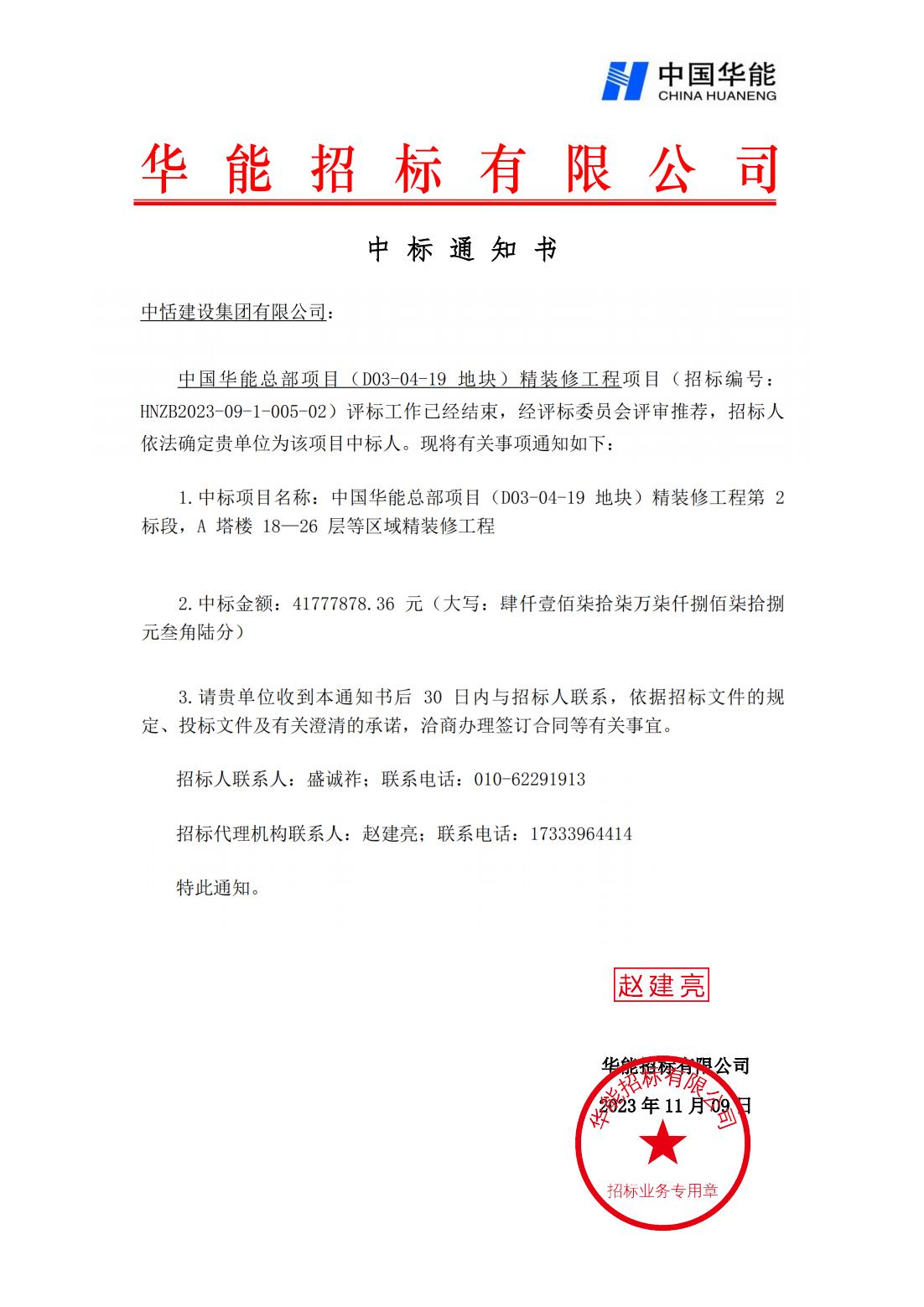 LEALN MORE >喜报!喜报!喜报! 中国华能总部项目(D03-04-19 地块)精装修工程项目中标通知