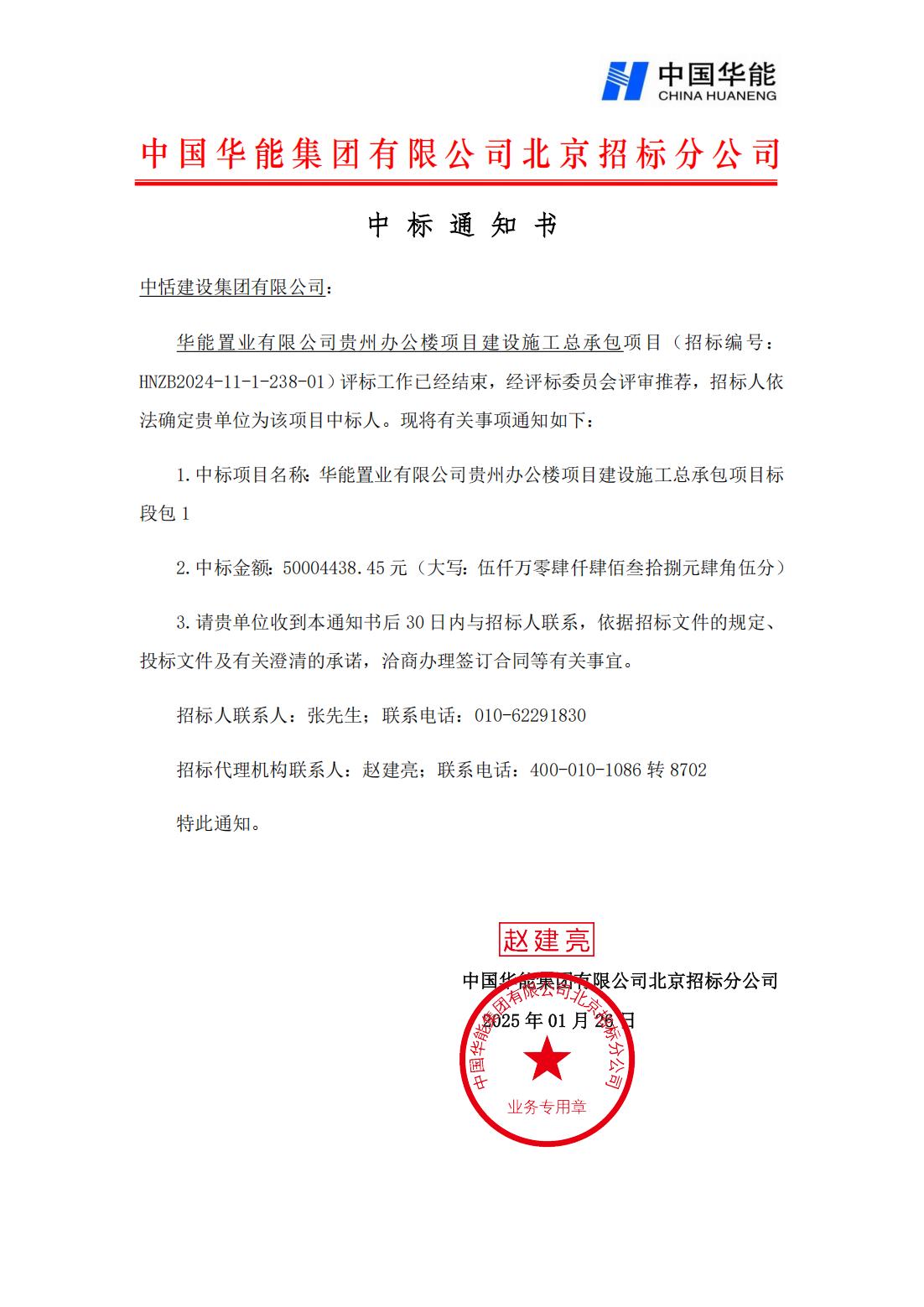集团中标华能置业有限公司贵州办公楼项目建设施工总承包项目